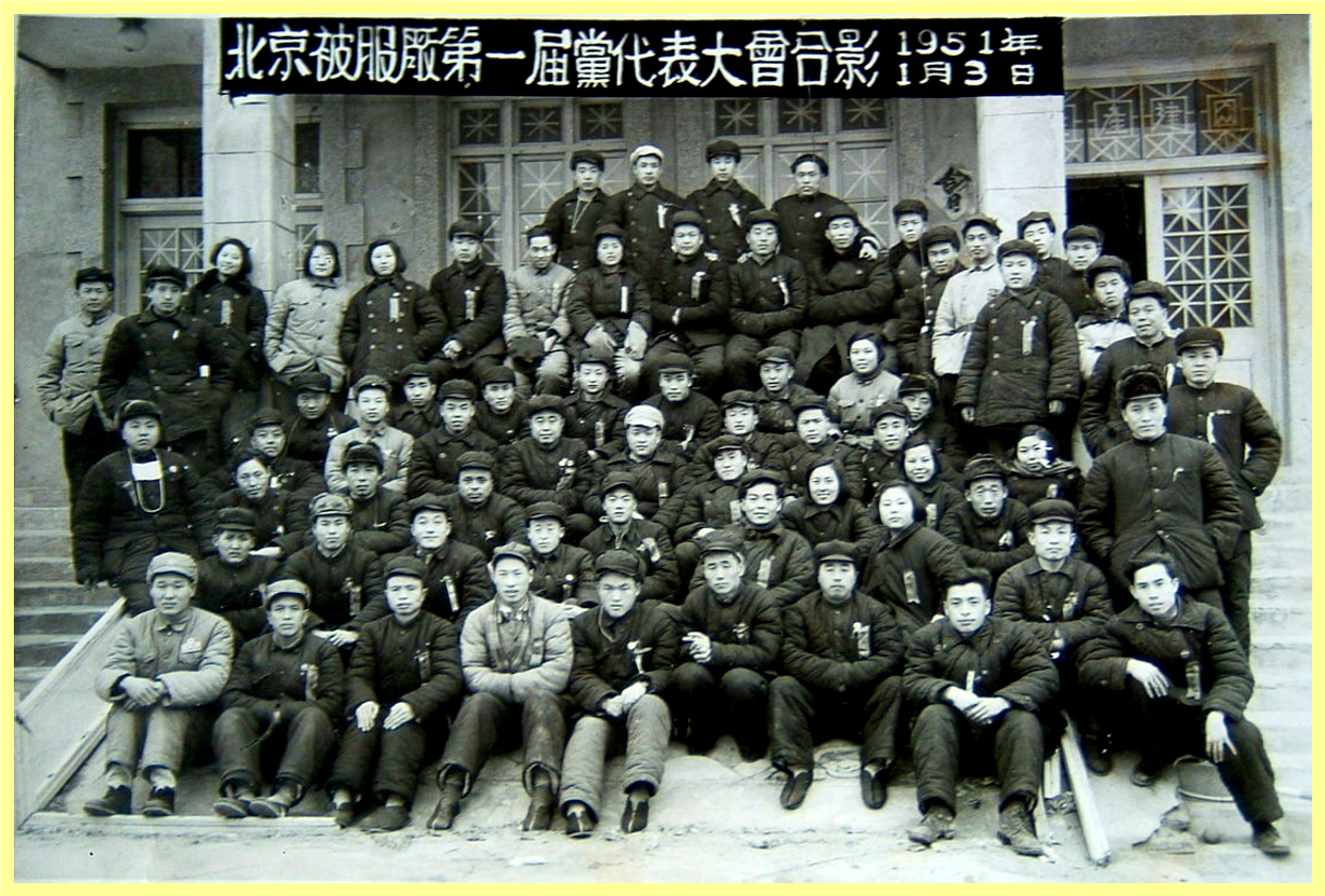1949年2月3日,軍代表對我廠進行了接管,同年7月1日,我廠地下黨公開,12月1日經中共北京市委批準我廠成立黨的總支委員會。1950年12月31日,第一屆黨代表大會正式召開,1951年1月4日大會結束。出席此次大會代表共45名,列席代表18名,代表全廠450名黨員。大會對1949年至1950年一年多來的工作總結報告,選舉產生了中共北京被服廠第一屆委員會。