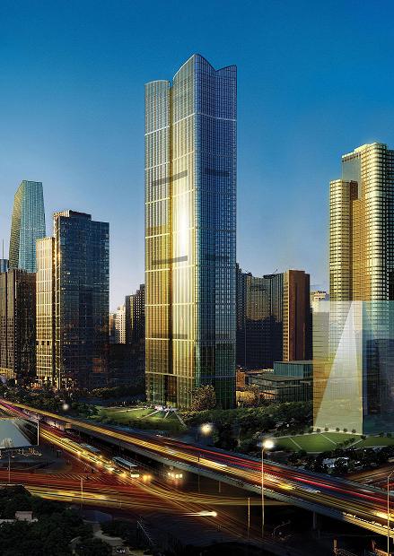 北京財富中心北側260米的辦公塔樓是整個建筑群的收官之作.項目秉持能源、環境與經濟均衡發展的規劃理念,嚴格按照美國LEED環保評估認證金級標準建造,成就綠色建筑新境界;項目集尖端科技與建造美學于一體,外觀蝶形設計,頂部皇冠造型。內部空間無柱設計,國際標準的硬件設備更提升了物業綜合實力和競爭優勢。開創了CBD智能辦公新標準。此外財富金融中心還精心設計了近萬平米的綠色中心廣場,擁有CBD最大的辦公樓戶外花園景觀,使國際商務精英在繁忙的工作之余,獲得全身心的輕松與愉悅。