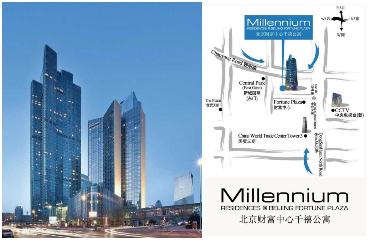 北京財富中心千禧公寓地處北京CBD商業中心這一亞洲最具發展動力和升值潛力的區域核心地段,距離商業辦公室、各國大使館及展覽中心咫尺之遙,緊鄰財富購物中心。千禧公寓由331間裝修豪華、設施完備的房間組成,寬敞一居至三居室從102平米到 243平米不等。所有房型均設有專屬的客廳、餐廳、廚房和衛生間,提供精美的家具家電。